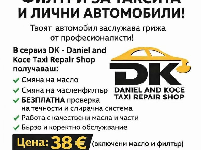 Сервизът предлага смяна на масла и филтри,ремонт двигател и ходова част както и бояджийски услуги.За записване на час с приоритет се свържете с номерата от визитката. Разполагат с голям набор от части както нови така и втора употреба.